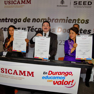 Los docentes de Durango así como los propios trabajadores de la Secretaría de Educación, estamos listos para sumarnos a los retos que enfrenta la Nueva Escuela Mexicana, dijo el Secretario al reconocer la labor y compromiso de 4 mil 366 docentes de educación básica y 208 más de educación media superior.