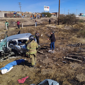 Bomberos de Durango acudieron al llamado de auxilio por un accidente vehicular tipo choque frontal registrado sobre el Anillo Periférico Norte, en la carretera Durango–Mazatlán, a la altura de la concretera, con saldo preliminar de tres personas fallecidas y una persona prensada.